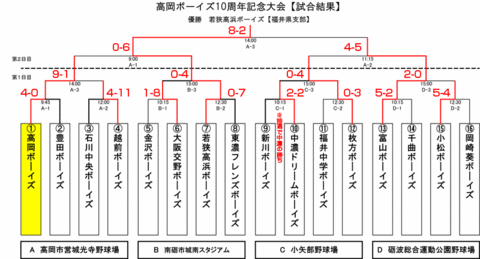 高岡ボーイズ設立10周年記念大会結果