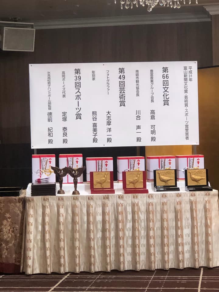 同賞は富山県内の文化・芸術・スポーツの各分野の振興に貢献した方々を顕彰するものです。